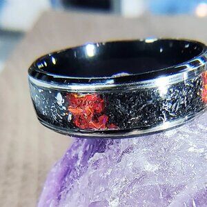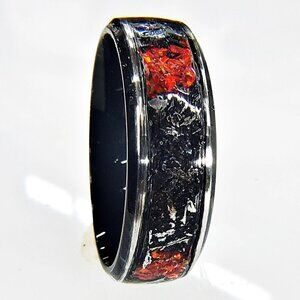 "Asteroid Alert" Ring with Campo del Cielo Meteorite Shavings & Red Opal