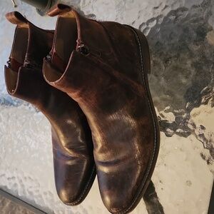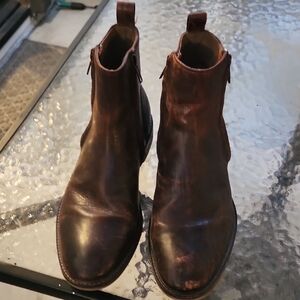 Stylish and durable men's brown zip up leather boots, perfect for any occasion.size 8 in great condition