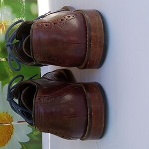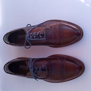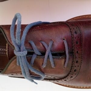 Aston Grey Men's leather Oxfords with Blue laces, 9.5, Burgundy Brown, a few nicks and stretches , light heel wear, very nice shoe with lots more wear to give.Pre-owned