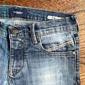 Elastic for adjustable waist and a button on the inside on one side is missing. Please see photos. Doesn’t affect wear or look at all.