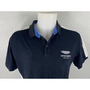 Aston Martin Racing Men XXL Polo Shirt Black Embroidered Logo 98 Hackett London