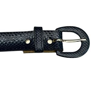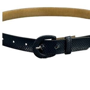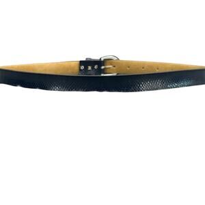 Astor Vintage Navy Blue Snake Print Leather Belt Women 27.5” - 32.5”