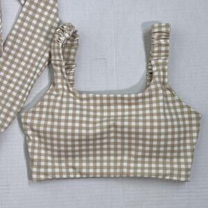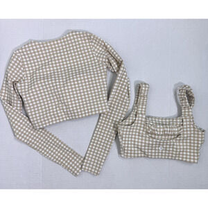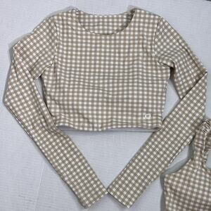 Astoria Activewear Set Womens Small Gingham Sports Bra Long Sleeve Crop Top Prep