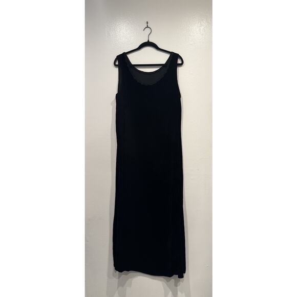 Astoria Designs Black Silk Blend Velvet Maxi Dress XL Whimsigoth Floral Trim