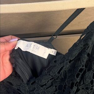 Chic black lace dress with a backless design. Perfect for evening wear.