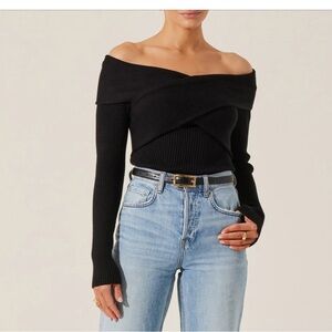 Chic off-the-shoulder design. Ribbed texture. Perfect for layering.