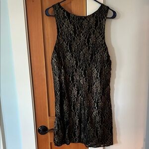 Chic mini dress with intricate lace overlay. Perfect for stylish outings.