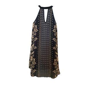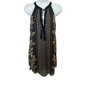 Astr Blck Mini Flowy Sleeveless Tassel Ties at Neck Keyhold Back Dress S