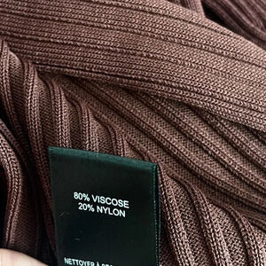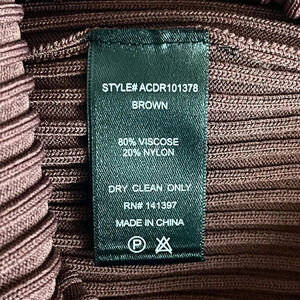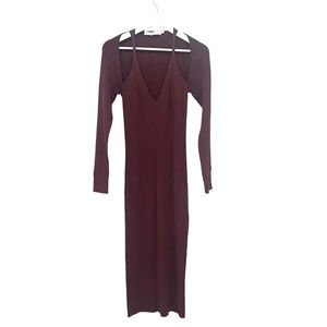 Elegant brown midi dress. Features long sleeves and a V-neckline. Perfect for any occasion.
