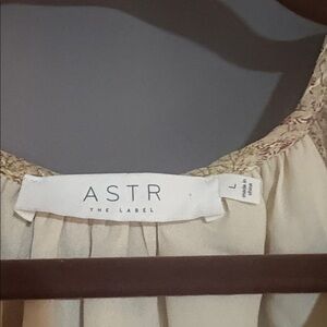 Elegant cream dress with floral design. Features stylish puff sleeves.