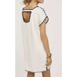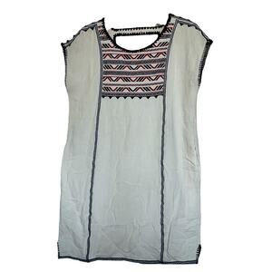 Astr Cream with Aztec Embroidery Cut-out Back Pocketed Linen/Cotton Dress XS