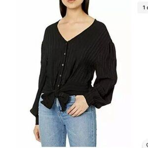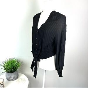 Astr Cropped Tie Shirt black button down tie women’s size XS