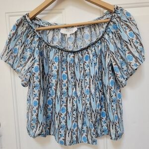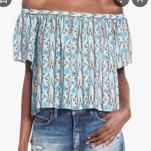 Astr Floral Off the Shoulder Cropped Ruffled Boxy Cornflower Blue Gathered Top