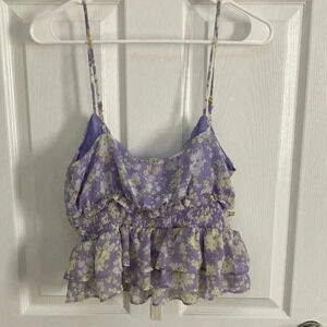 Sweet little ruffle floral crop top with a stretchy middle, square neckline and adjustable straps. Fully lined.