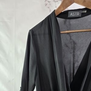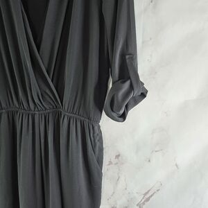 Astr Jumpsuit Womens Medium Black Blouson V Neck Quarter Sleeve Pockets