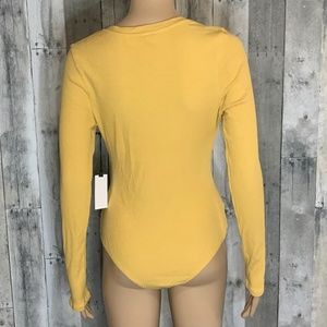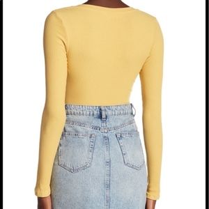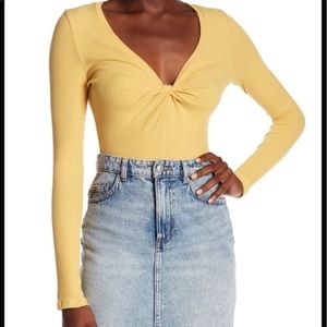 Astr Knot Front Yellow Knit Ribbed Bodysuit NWT