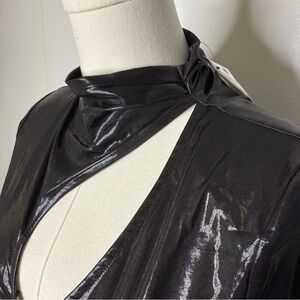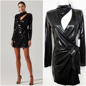 Astr Label Cutout Long Sleeve Patent Wrap Minidress Gunmetal Wrap Dress Small nw