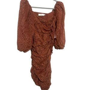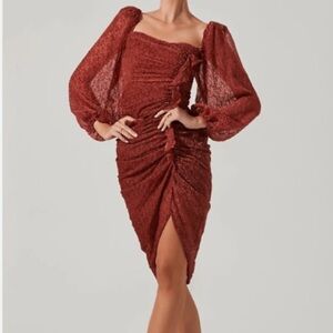 Astr Label Revolve NWT Athens Ruched Puff Sheer Sleeve Midi Dress Cranberry XS