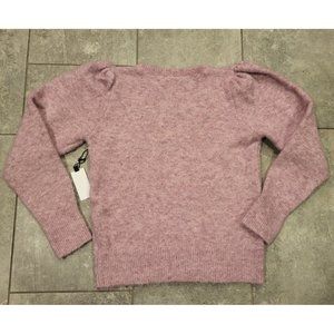 Chic mauve V-neck sweater. Features long sleeves. Perfect for layering.