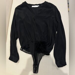 Medium Black bodysuit Long sleeve Vee neck Excellent condition Under the arm width 21 in Length 21 in