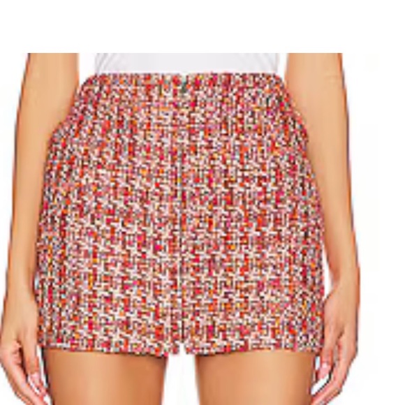 Self: 85% polyester, 15% cotton.Lining: 100% polyester. Made in China. Dry clean only. Unlined. Hidden back zipper closure. Midweight tweed fabric. Item not sold as a set. Skirt measures approx 14" in length. Revolve Style No. ASTR-WQ50. Manufacturer Style No. ACS9145.