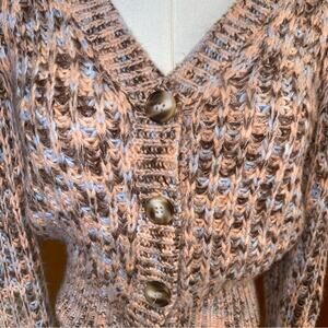 Astr Pastel Pink Blue Cardigan Sweater V-Neck Chunky Knit Woven Button Cottage