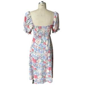 Astr Puff Sleeve Smocked Bust Midi Pastel Print Floral Dress Size Small