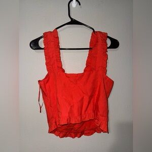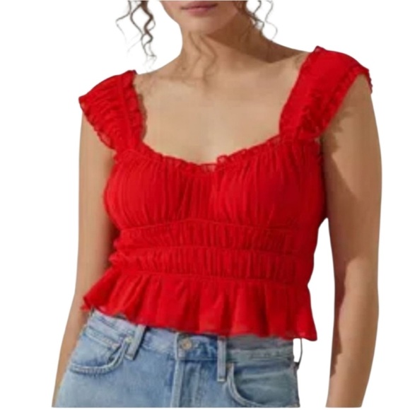 Astr Red Ruffle Crop Tank S