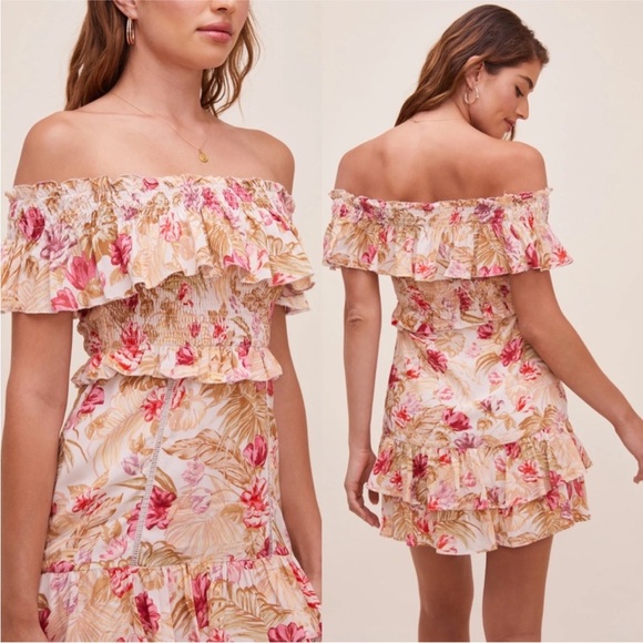 Astr Riviera Floral Ruffle Off Shoulder Dress