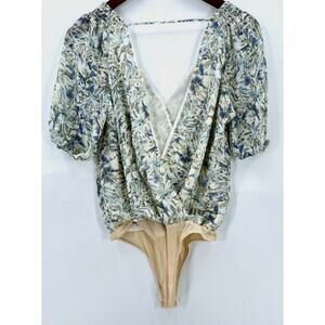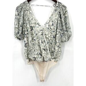 Astr Surplice Double V-Neck Puff Sleeve BodySuit Sz Small in Ivory Floral NWT