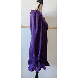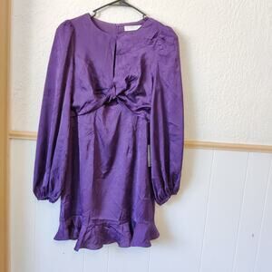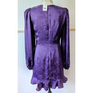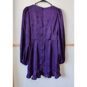 Astr The Label Cocktail Mini Dress Long Puff Sleeve Ruffle Sz M Purple Floral Satin
