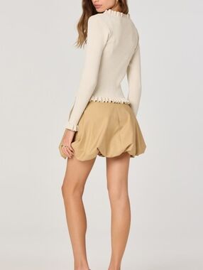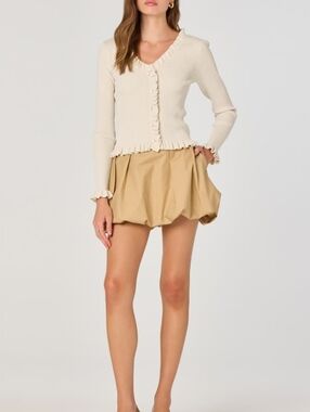 Astr The Label Cream Ruffled Ribbed Button-Front Cardigan