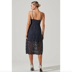Features: A figure-flattering closet staple. It features a lace overlay plunging neckline and playful A-line silhouette that descends to a midi length skirt. Finished with skinny adjustable straps and a hidden zipper back closure.