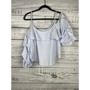 Astr The Label Ruffle Blue Stripe Shirt Small Cotton Boho Coastal Fairy Feminine