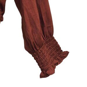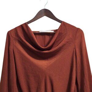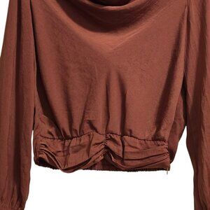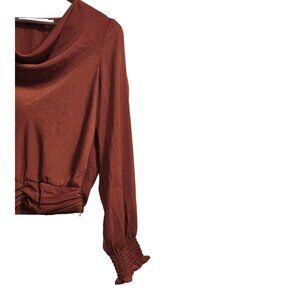 Astr The Label Satin Drape Neck Long Sleeve Blouse in Rust Sz XS