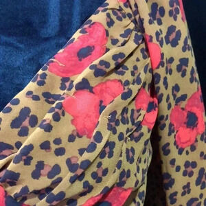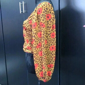 Astr The Label Shirred back,V-neck wrap,puff long sleeve leopard/poppy print