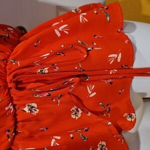 Brand new with tags floral wrap front blouse. Has small snap to keep it closed. Pull on style