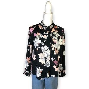 Astr The Label Tie Neck Long Sleeve Blouse Top Size S Black Pink Floral Sheer