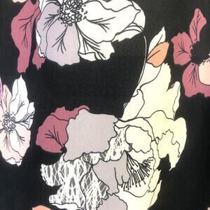 Color and material- Black and pink and peach flower print in a polyester sheer flowy fabric