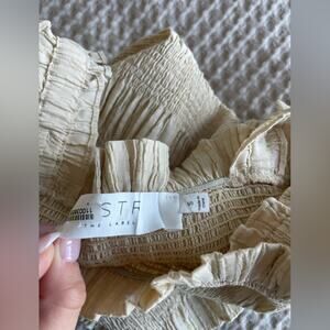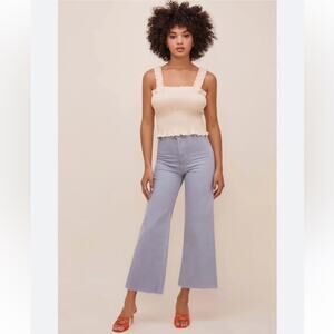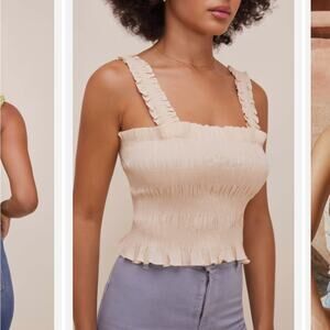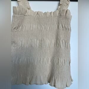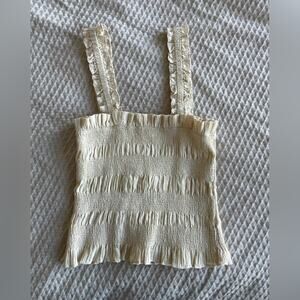 The Twiggy Top features a square neckline with ruffle-trimmed straps. Smocked design flatters your figure.