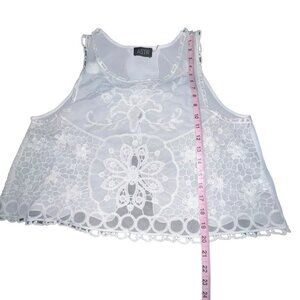 Astr The Label White Lace Embroidered Sheer Tank Blouse Women Large Open Back