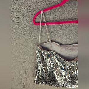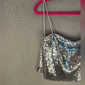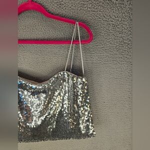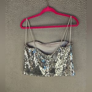Astr The Label Womens Luxoria Top Sz M Adj. Spagetti Straps Sequined Cropped