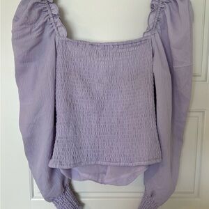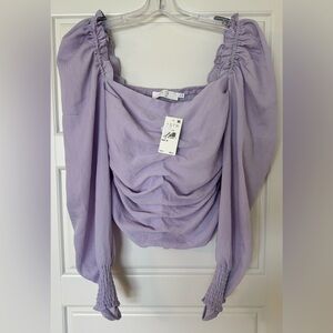 Astr The Label Women's Puff Lantern Sleeve Top Sz M Pale Purple Ruched Back NWT