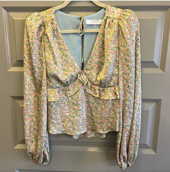 This beautiful blouse by ASTR is perfect for any occasion, whether you're traveling, going to a party, or just a casual outing. The blouse features a V-neckline, long balloon sleeves, and a tie closure at the back. The blouse is made of polyester and feels like rayon fabric, which is a lightweight and stretchy waist, making it comfortable to wear during summer, fall, and spring seasons.