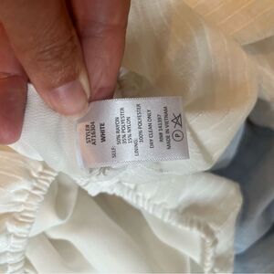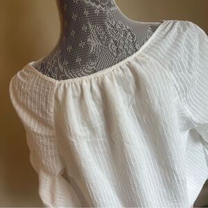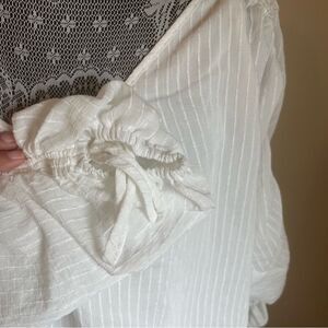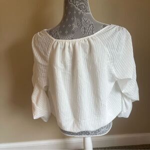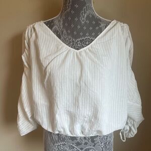 Cream RUCHED LONG SLEEVE TOP This elevated ribbed top features a V neckline that leads to a cinched waist and long sleeves with ruched detailing. EUC
