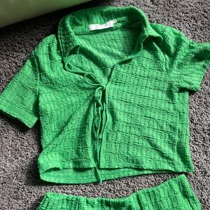 Astr Brand matching 2 piece set with tie front top and slightly flared split-hem pants. Size medium, some stretch to the fabric. I am 5’9” and the pants were long enough for me, so they are tall-girl friendly. 31” inseam. Could be styled together or separately. Open to offers and willing to answer any questions!