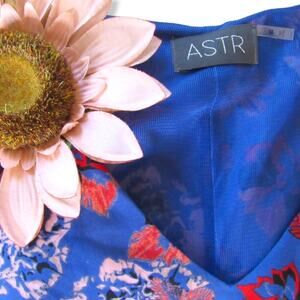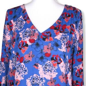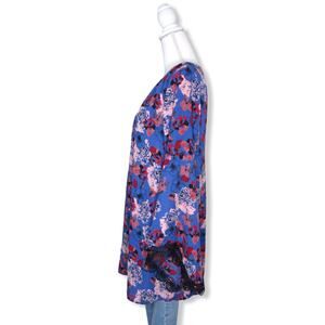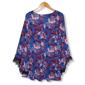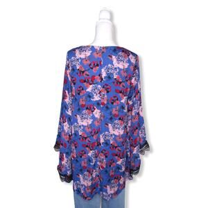 Astr Women's Lace Sleeve Tunic Top M Blue Pink Floral Bell Sleeves Flowy Blouse
