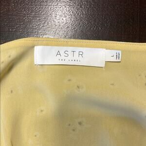 This elegant blouse from Astr features a charming wrap design with puff sleeves and a flattering peplum waist. The soft yellow hue and lightweight fabric make it perfect for a breezy, stylish look.