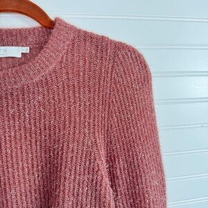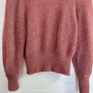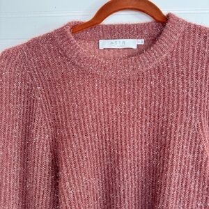 Astr the Label Arlene Sweater Rose Sparkle Small Pullover Crew Neck Puff Sleeve