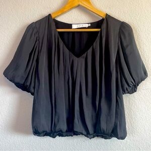 Astr the Label Black BUBBLE HEM SHORT SLEEVE TOP V Neck Contemporary Size Small